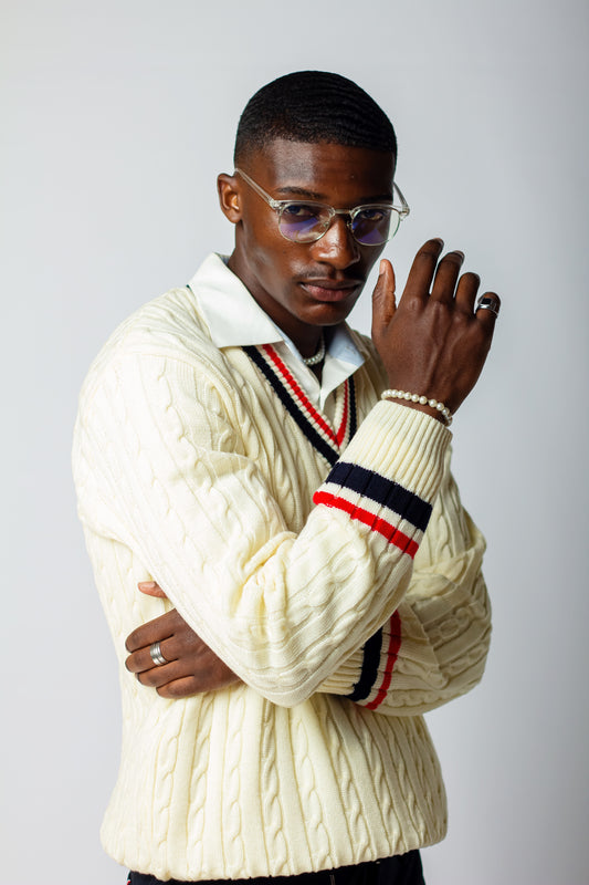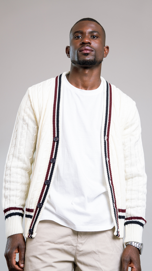 Cream, Maroon & Navy Blue Tennis Cardigan