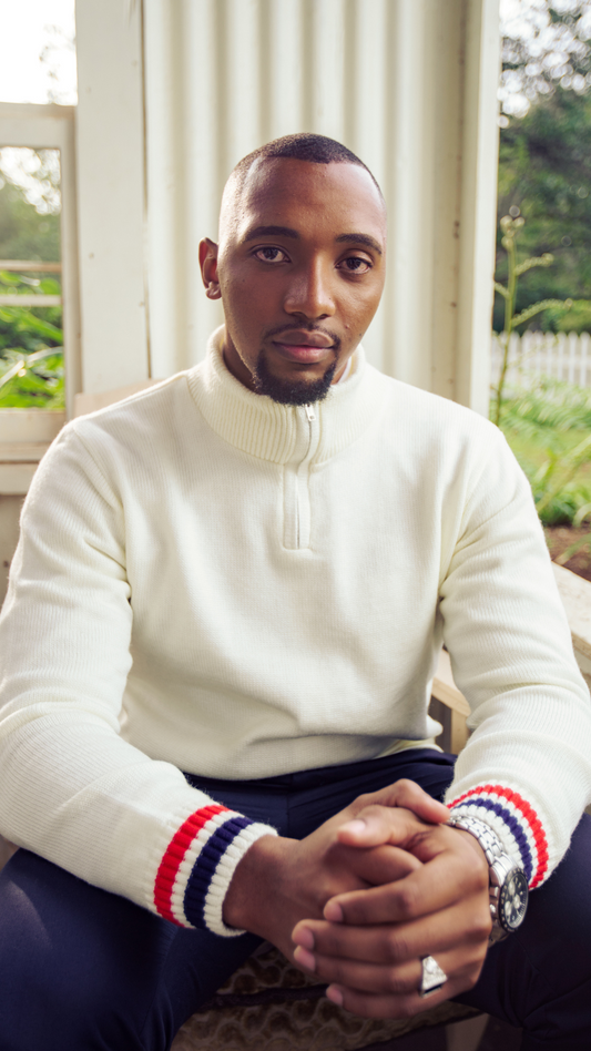 Cream Quarter Zip with Red & Blue